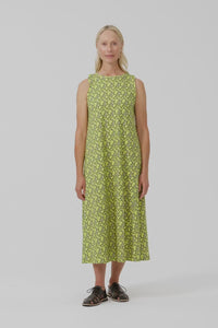 The Flora Dress is a relaxed, easy-wear style designed with an a-line shape for a comfortable, off the body fit. A printed version of our Tank Swing Dress, it falls to ankle length and features our signature twisted side seams. Made from midweight organic cotton jersey and printed in our hand-drawn Flora print. It can be worn loose or cinched in at the waist with the narrow, self-fabric tie.